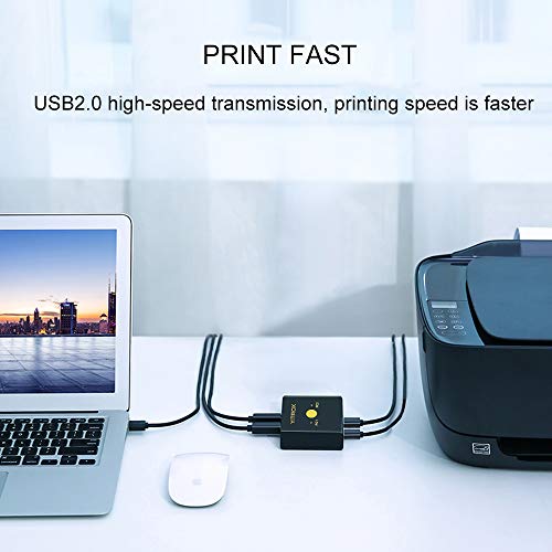 - 【USB sharing switch 2 computers】One-key switch between 2 computers, USB 2.0 high-speed data transmission. 2 computers or printers share 2 USB devices, convenient and efficient, plug and play.