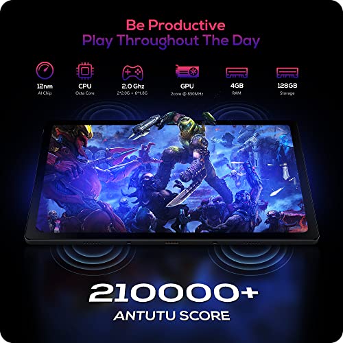 - 【Next Level Multitasking】With a 12nm 2.0Ghz Octa Core AI processor on board, you get seamless multitasking and hyper-fast content streaming experience. The 60Hz refresh rate allows for a smooth scrolling screen to keep up with all your feeds. 4GB RAM, 128GB big storage is easily expandable to 2TB by external TF/SD Card, download all your favorite games, videos, e-books freely. Screen cast supported, project your tablet to a big TV screen wirelessly when needed.