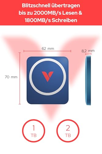 Verbatim Snapback SSD 2TB, External SSD, USB 3.2 Gen 2x2, up to 2000MB/s Read & 1800MB/s Write, Portable External Hard Drive with 20 cm USB-C Cable, for iPhone, Android, PC & Mac, Metallic Blue