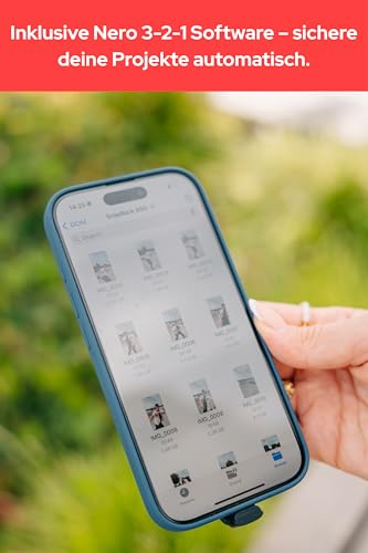 - Box contents: 1 x snapback SSD 2TB, 1 x U-shaped USB-C cable for seamless smartphone connection, 1 x 20 cm USB-C cable, quick start guide, Nero 3-2-1 backup software for planned backups and magnetic ring for even more stability