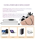 - 【USB Powered】Can be used in combination with laptop computers, PC, mobile batteries, USB chargers, and various USB interfaces. You can control the power on/off and switch to your favorite lighting mode. The length of the power cord is up to 200CM, and you can use it without hesitation, such as reading in the bedroom, working in the office, making up in the restroom, camping outdoors, and broadcasting live. The ring light is stable when the power adapter is 5V/2A.