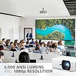 - High Brightness FHD Laser Projector: Full HD (1920x1080p) resolution with a 1.1-1.5 throw ratio and 5,000 ANSI lumens for clear, detailed images in any space