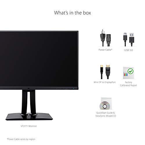 ViewSonic VP2771 27-Inch Premium IPS 1440p Monitor with Advanced Ergonomics, ColorPro 100% sRGB Rec 709, 14-bit 3D LUT, Eye Care, 60W USB C, HDMI, DP Daisy Chain for Home and Office