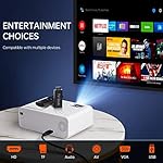 - 【WIRELESS PORTABLE PROJECTOR】Boasts advanced wireless screen mirroring technology, V1 wifi projector will surprise you with the smooth and sharp 1080p video streaming experience while enjoying the Hollywood blockbuster at home. The diffuse reflection technology of LCD projector creates softer image which is healthier compares to traditional television.