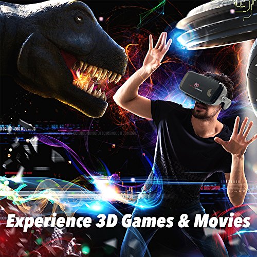 VIRTUAL VISIONS Virtual Reality Headset With Earphones By JayTec, 3D VR Goggles With Free Game Controller, For Virtual Reality Games And Movies, Compatible With 4.7-6.2 iPhone and Android Devices