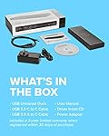 - Dual 4K display - connect 2 monitors and a single laptop in ultra HD (4096 x 2160 @ 60Hz): 2x 4K DisplayPort, 2x 4K HDMI, 1x USB-C (Output only), 6x USB-A 3.0 Ports (5 Gbps transfer speed), 1x RJ45 (10/100/1000) Gigabit Ethernet, lock slot, and additional headphone audio line out and microphone in-line jack. Includes: 1 USB-C to C cable and 1 USB-A to C cable