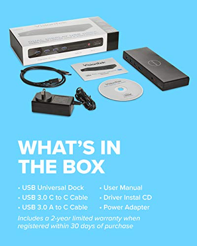 VisionTek VT4000 Universal Dual 4K Laptop Monitor Docking Station, Dual UHD Video, HDMI, DisplayPort, USB 3.0, USB-C, RJ45 Ports, for Mac & Windows (901005), Black
