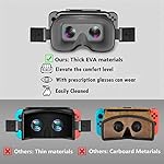 - Say Goodbye To Carboard Materials: Made of EVA and Oxford materials, super light weight and durable, no worry that your VR glass get mildew in wet weather, includes adjustable headstrap and more thick materials to touch your face, no need to grip the switch console near your head.