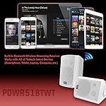 Pyle Wall Mount Home Speaker System - Active + Passive Pair Wireless Bluetooth Compatible Indoor / Outdoor Water-resistant Weatherproof Stereo Sound Speaker Set with AUX IN - PDWR51BTWT (White)