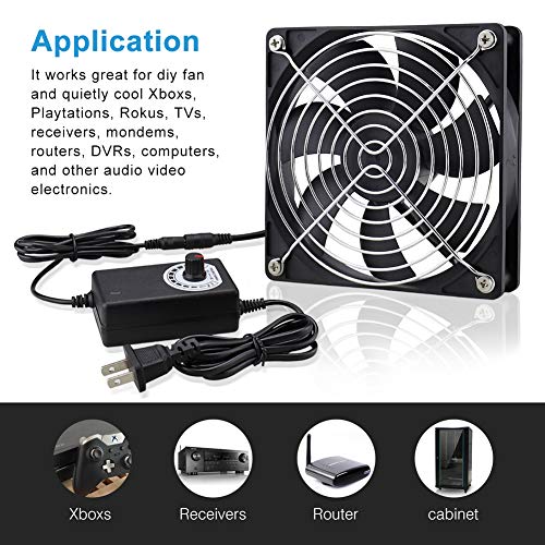 Wathai 120mm x 25mm 110V 220V AC Powered Fan with Speed Controller 3V to 12V, for Receiver Xbox DVR Playstation Component Cooling