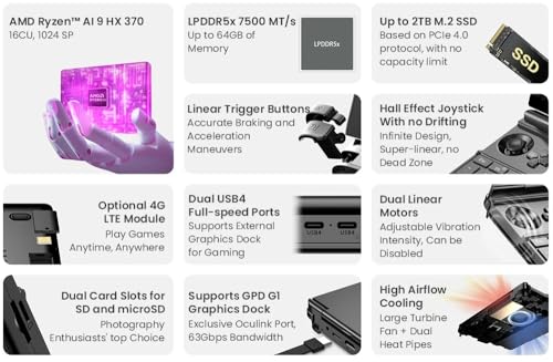 WEELIAO GPD Win Max 2 2025 Gaming Laptop with AMD Ryzen A1 9 HX-370 Processor, 10.1-Inch Touchscreen, 67Wh Battery, Hall Sensor Joysticks (AMD Ryzen AI 9 HX 370, 64GB RAM +2TB SSD)