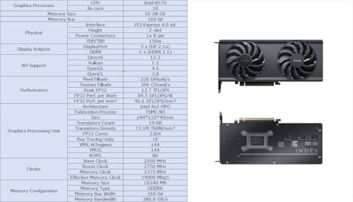 Select Variant: WEELIAO GUNNIR Intel Arc B570 Index Graphics Card,2500 Mhz Video Card,10GB 160-bit GDDR6,PCIE4.0,1 HDMI2.1,3 DP2.1,Dual Fans,TBP 150W
