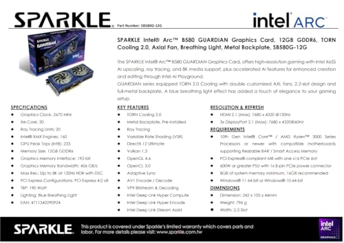 - 【Powerful GPU】SPARKLE Graphics Card come with Intel ARC B580 GPU,With Intel Deep Link technology, Intel CPUs and GPUs work together, Achieve new improvements in performance and efficiency.