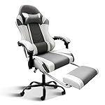 White Gaming Chair with Footrest, Big and Tall Gamer Chair, Racing Style Adjustable Swivel Office Chair, Ergonomic Video Game Chairs with Headrest and Lumbar Support