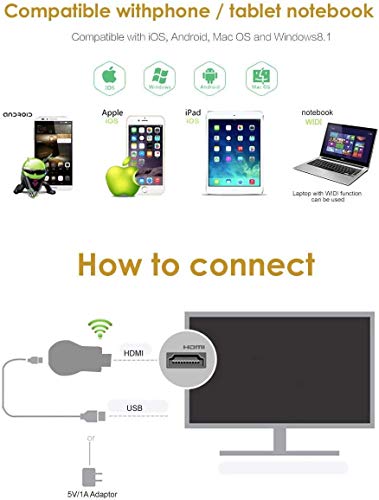 WiFi Wireless Display Dongle 1080P Mini Receiver Sharing HD Video from Projectors Cell Phones Tablet PC Support Airplay/ Chromecast/Chromecast Tv/Miracast/Miracast Dongle for Tv