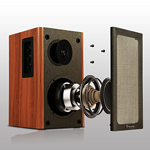 Wohome Bookshelf Speakers Remote Control Bluetooth/RCA/Opt 80W Powered Active Home Theater Speaker (Pair, Wooden Enclosure, Wood Color, 4 Inch Driver, Model S106)