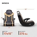 Select Variant: X Rocker 24K Floor Rocker Gaming Chair, with Headrest Mounted Speakers, 2.1 Bluetooth, Recliner with Padded Armrest, 5110501, 36.2" x 20.8" x 31.5", Black with Gold