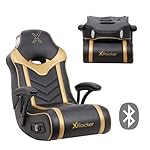 X Rocker 24K Floor Rocker Gaming Chair, with Headrest Mounted Speakers, 2.1 Bluetooth, Recliner with Padded Armrest, 5110501, 36.2" x 20.8" x 31.5", Black with Gold