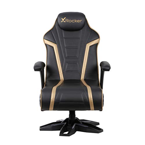 X Rocker Trident Pedestal Video Gaming Chair, Wireless Audio, Backrest Mounted Subwoofer, Padded Armrest, 5152301, 30.9" x 41.7" x 26.2", Amazon Exclusive, Black and Gold