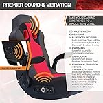 X Rocker Aspire 2.1 Race Car Seat Video Gaming Chair Lounging Floor Rocker with Vibration Motors, Wireless Bluetooth Audio, 2 Speakers & Subwoofer, Padded Armrests, Comfortable, Foldable, Black Red