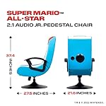 X Rocker Super Mario Video Gaming Pedestal Chair, Official All-Star Edition Nintendo Collectible, 2 Speakers, Subwoofer, Foldable, 5001601, 27.56" x 21.65" x 37.4", Blue, White with Red