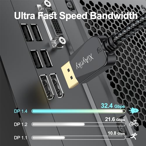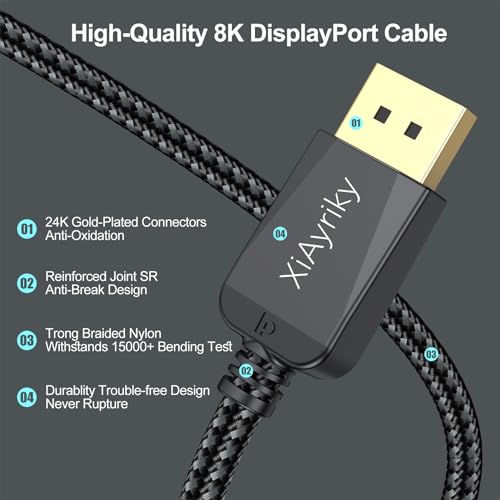 XiAyriky 10FT DisplayPort 2-Pack, 8K DP 1.4 Cable for Gaming, 180/165/240Hz, 32.4Gbps, HDR10, 8K@60Hz, 4K@240Hz for RX 7700XT, RTX 4070/4090