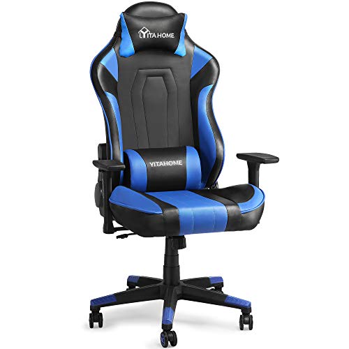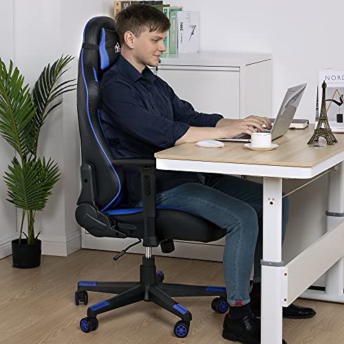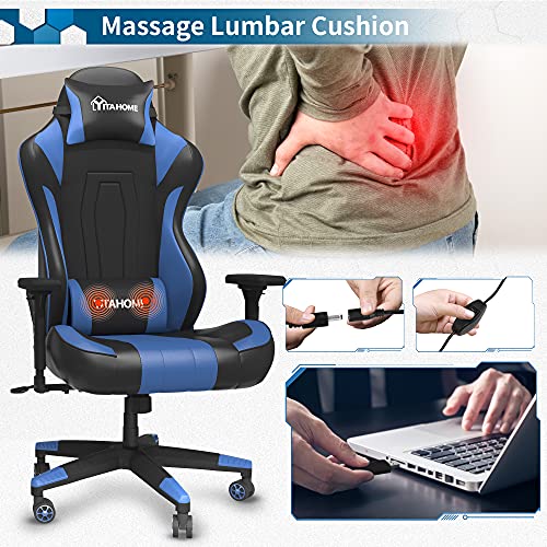 YITAHOME Massage Gaming Chair Big and Tall Heavy Duty 350lbs Ergonomic Video Game Chair High Back Office Computer Chair Racing Style with Headrest and Lumbar Support,Blue