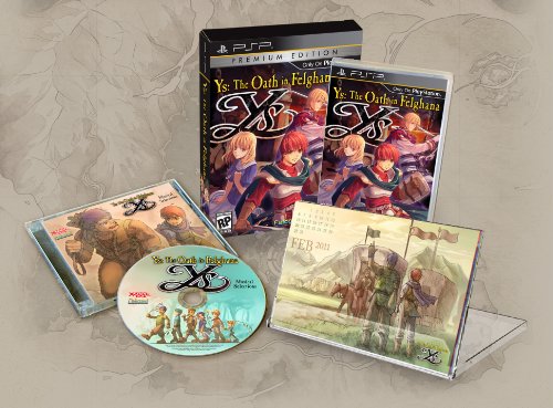 - Ys: The Oath in Felghana Limited Edition comes with Game soundtrack CD featuring more than 20 songs and a 4" by 6" 2011 art calendar featuring art from the game