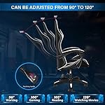 - [Fully Adjustable] Large angle adjuster provides perfect angle support from 90 to 120 degrees to suit all your needs. Gas lift cylinder allows height adjusting from 16 to 19 inches. Full 360 degrees of swivel rotation enable dynamic movement.