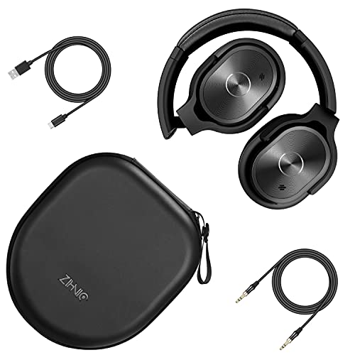 ZIHNIC Over-Ear Bluetooth Headphone, Active Noise Cancelling Headphones, 40H Playtime Wireless Bluetooth Headset with Deep Bass Hi-Fi Stereo Sound (Black)