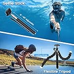 - đď¸ăLightweight Travel KităPortable Handle Selfie Stick has good extension and support; Flexible Tripod can wrap around objects and stand stably; Case and bag to solve the problem of storing accessories